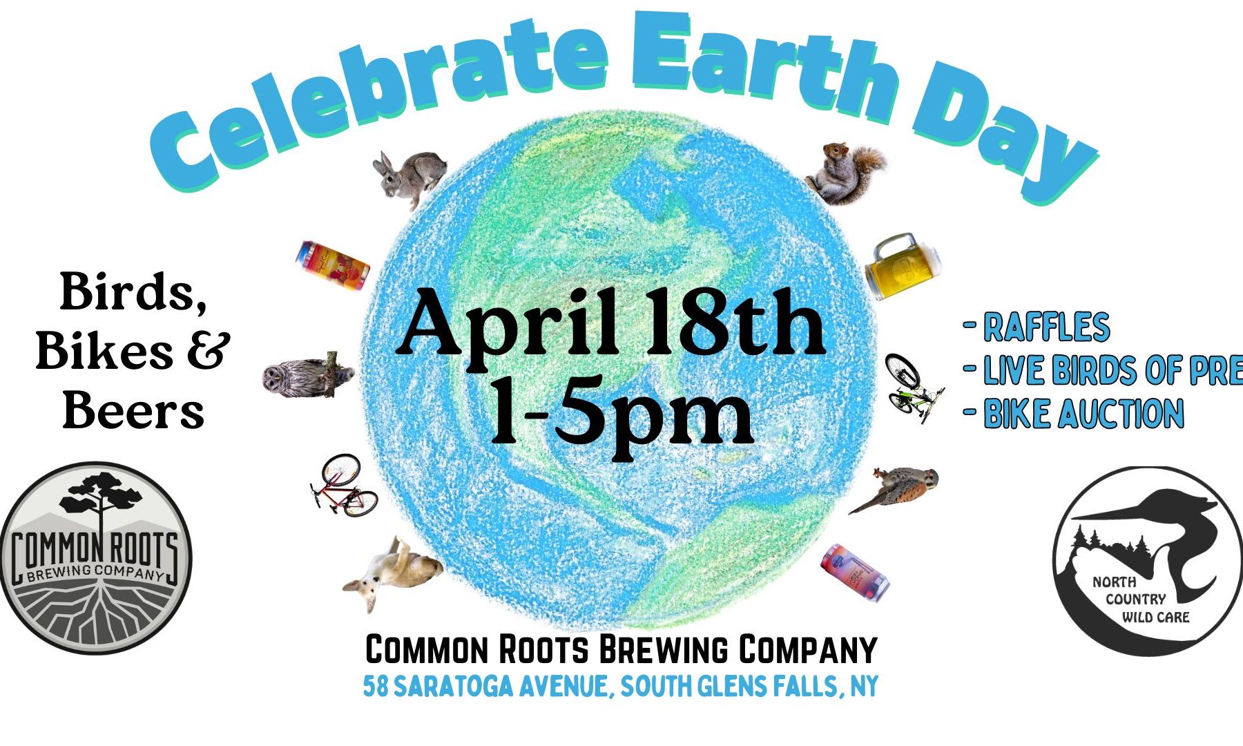 Friday, April 18, 2026 1:00pm – 5:00pm Celebrate Earth Day weekend with us at Common Roots Brewing! Enjoy an afternoon filled with delicious food, exciting raffles & bike auctions, AND a special appearance by our favorite live educational birds and Bo the beaver! 🦉🦫🚲…