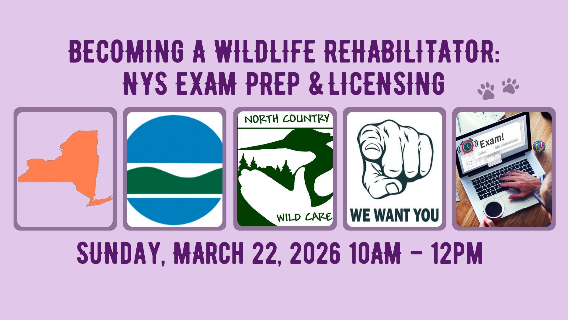 New York’s wildlife rehabilitator licensing exam is coming up in April (offered again in August ). In NYS all wildlife rehabilitators are volunteers who are licensed by the state to care for injured or orphaned wildlife in their home. NY State offers the licensing exam twice a year. This class will help you prepare. You will find out how to register, what you must know going into the exam, and what happens after you pass. This class will help you focus on the essentials and expand your understanding of the regulations and calculations so you can feel confident on test day.